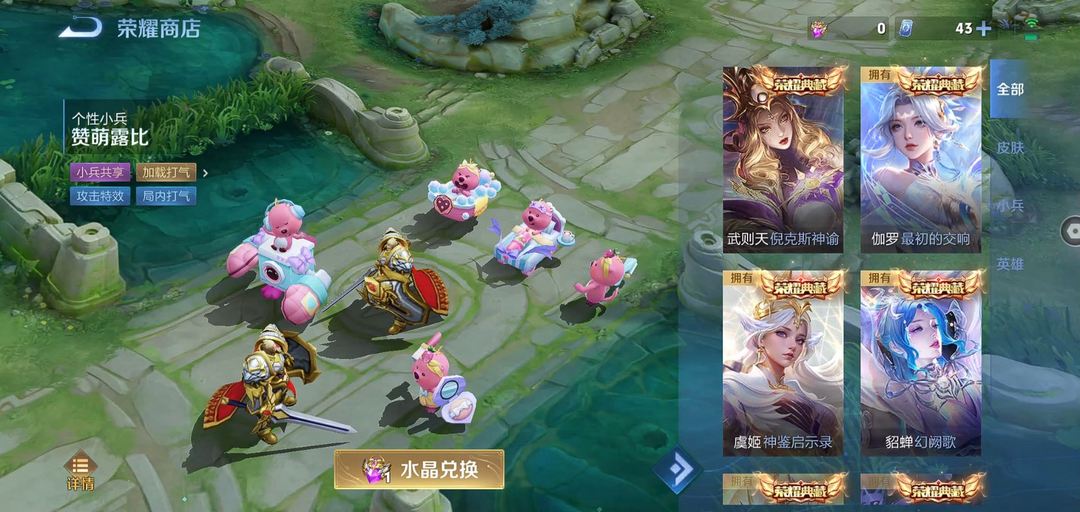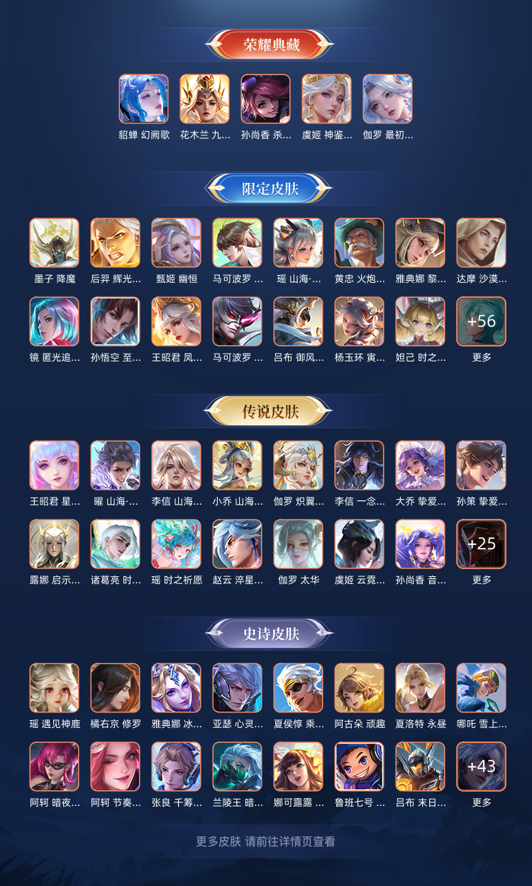 装备描述:571皮肤-5星传说 无限倾慕 黛羽霜翎 星际治安官 未来机甲 破晓神光 5典藏 2珍品 2无双 88传说 2珍品 时之奇旅孙策 怪盗基德 2无双 群星魔术团韩信 青丘九尾 -5典藏(已兑换) 最初的交响 神鉴启示录 杀手不太冷 九霄神辉 幻阙歌 冥王哈迪斯 心动手记朵莉亚 群星魔术团云中君 黄金天蝎座 落雪白狼 乘龙问璇玑 乘龙淬吴钩 乘龙铭钟鼎 战鼓燎原 逐花归海 觅芳踪 惊梅引 小动物乐团 云诺千山 幻光神枪 祥瑞亨通 愿照岁时盈 愿照千秋盛 愿照众生和 愿照九州拓 愿照山河定 愿照福禄聚 玄雷天君 至尊宝 鸣野蒿 映山客 鹤羽星尊 白虎志 朱雀志 玄武志 启明星使 时雨天司 御风骁将 寅虎御盾 谪仙醉月 寅虎心曲 山海碧波行 山海玄木吟 山海苍雷引 山海琳琅生 山海炽霜斩 牧神诗旅 追逃游戏男 追逃游戏女 太华 幽恒 烈魂 冰霜神祇 齐天大圣 天狼运算者 天狼溯光者 霸王别姬女 默契交锋女 默契交锋男 燃星之曲 画中仙 浮生妄 无限倾心女 大圣娶亲 辉光之辰 前尘镜 绯月行 炽翼辉光 星穹之声 凤凰于飞 魔法小厨娘 引擎之心 云端筑梦师 游龙清影 时之彼端 时之祈愿女 时之祈愿