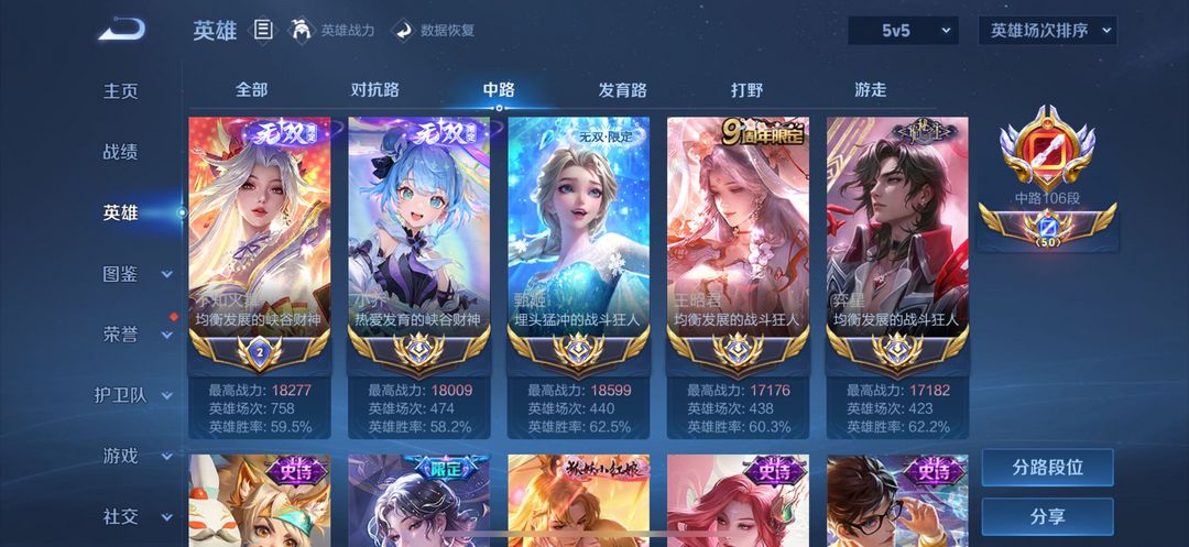 10月在榜巅峰百强24名闪电框⚡️106段中路在榜小国火舞小乔历史大国甄姬小乔弈星1.8火舞禁巅峰