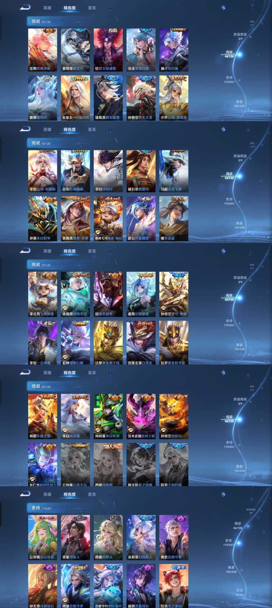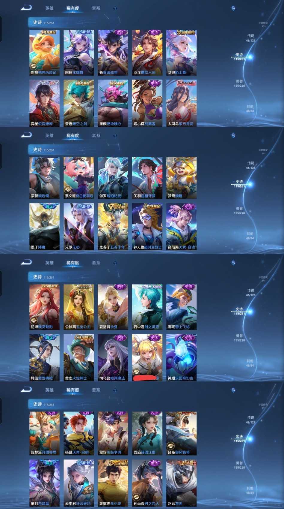 限制: 租号1次及以上 | 撤单率<49%才可租用此帐号装备描述:时间到了还登录白玩或者顶号全部改密拉黑处理永不解除,顶号机器会秒禁玩改密,顶号不仅拉黑还没得玩,赚三两块不容易,请理解谢谢。 ❤❤❤❤❤❤❤❤❤❤❤❤❤❤❤❤❤❤ 请勿开挂,挂机,送头,骂人,撤单后游戏等如有违规永久拉黑永不解除。 重置二级密码不要费劲了,号主每天都会上号查看,多行不义必自毙,人在做天在看,多做好事多自律,少做缺德事。 该号英雄125个皮肤369个,典藏2个,无双1个,珍品传说2个,传说46个,史诗115个,祝你游戏愉快