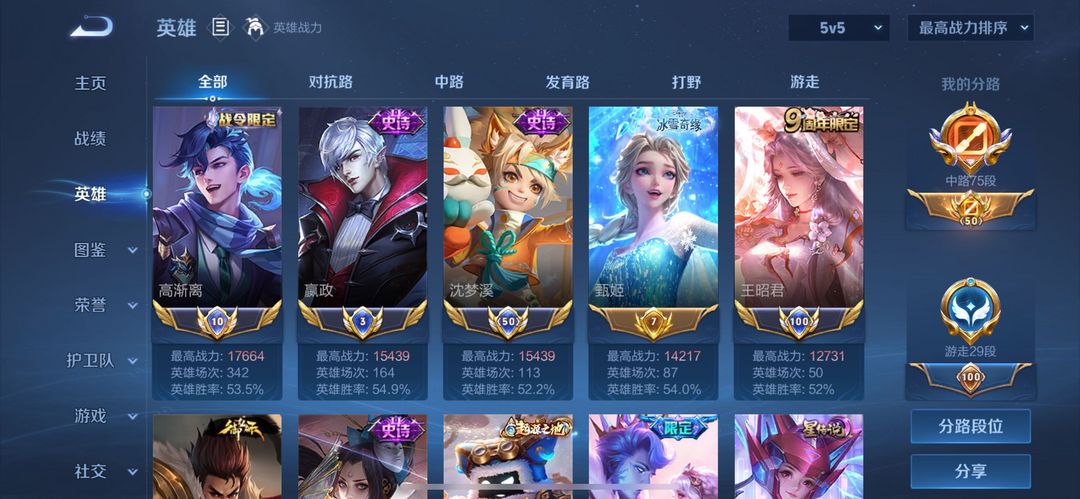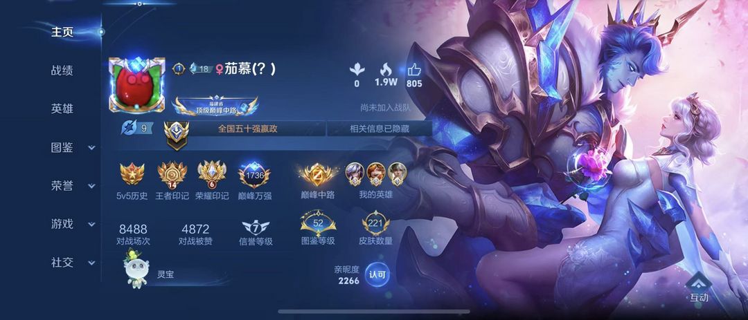 双小国标高渐离嬴政在榜⭐巅峰中路1380名闪电框⭐可排位/禁巅峰