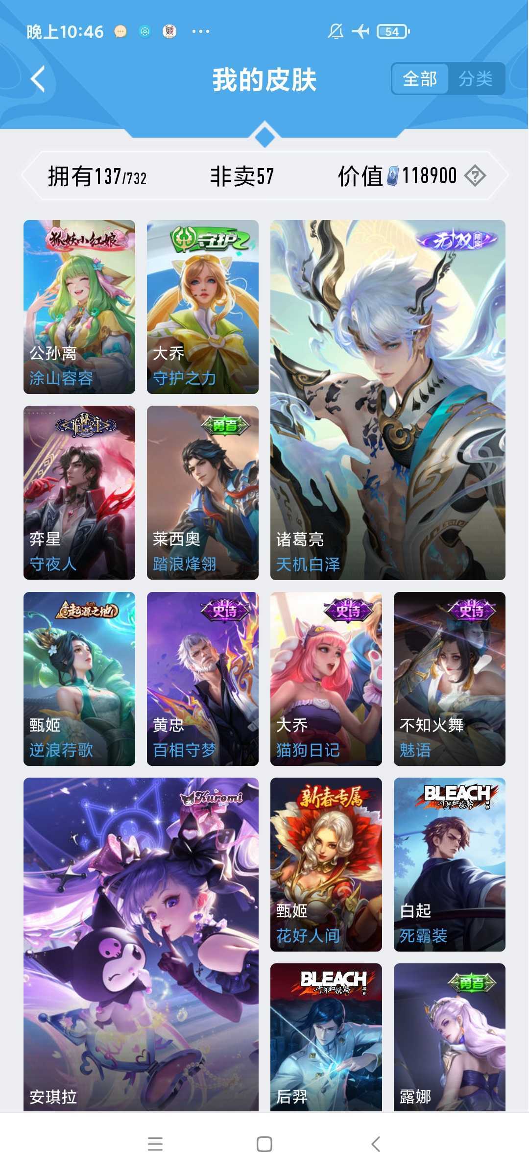 诸葛亮无双✸柯南✸怪盗基德✸曜无双✸安琪拉珍品✸谪仙✸无双飞将✸祈雪灵祝✸霜月尽诗剑行电光澜