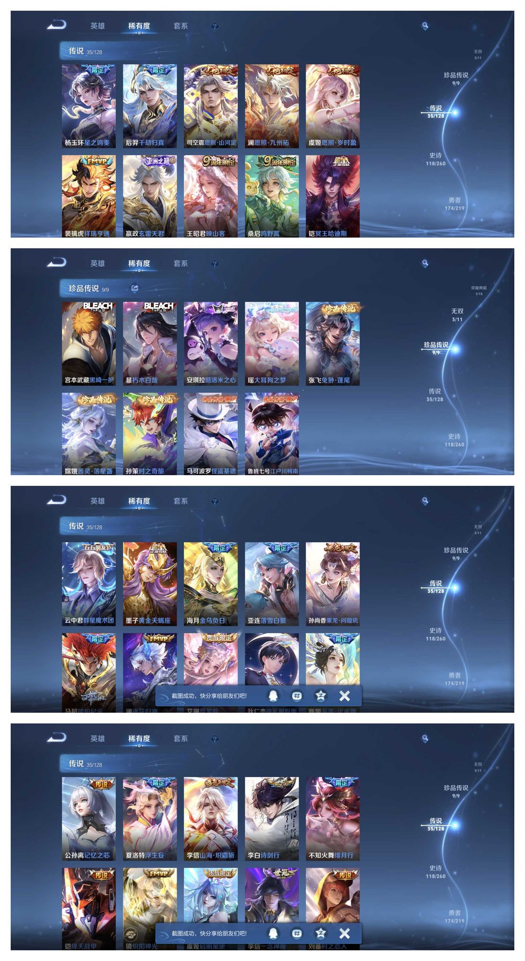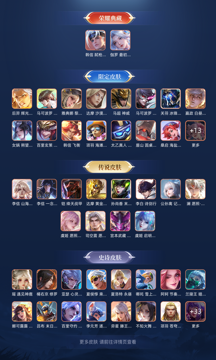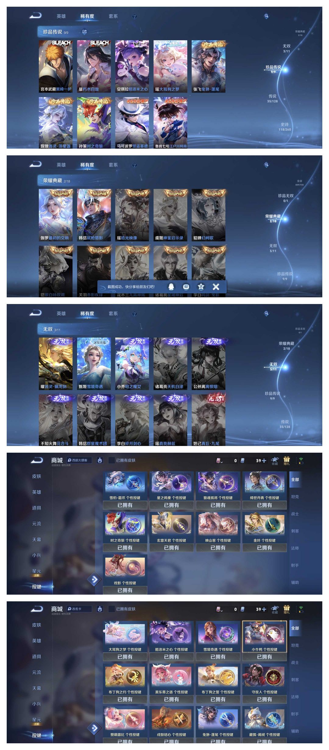 打野号V10⚡409P皮肤共享⚡满珍藏⚡小国澜⚡11万战⚡3无双2典藏35传⚡璃龙剑⚡雪域奇遇