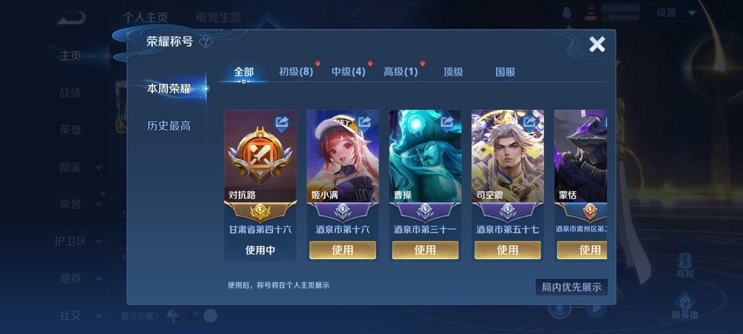 游戏区服:王者荣耀-QQ安卓-QQ账号