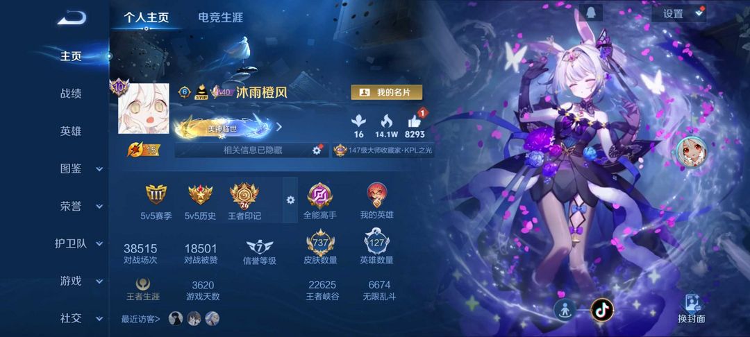 737真满皮账号!小兵典藏皮肤!凯无双皮肤!荣耀贵族♡满水晶典藏