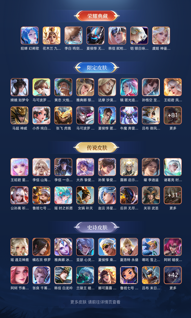V10不禁言580皮❤火舞花合斗❤满5无双李白韩信瑶❤8典藏6星❤心动手记龙年限定❤