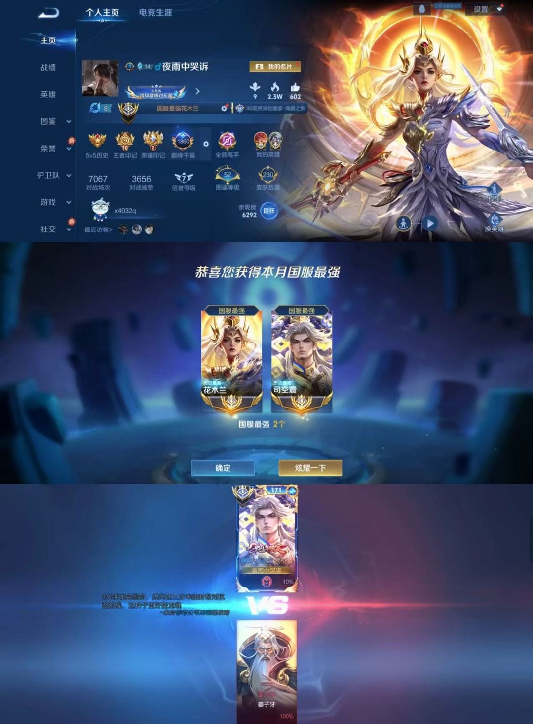 号主v:tuosu2十月在榜国服镜澜裴擒虎⚡️巅峰前十国服猴子香香阿离马可⚡️老虎马超木兰120段