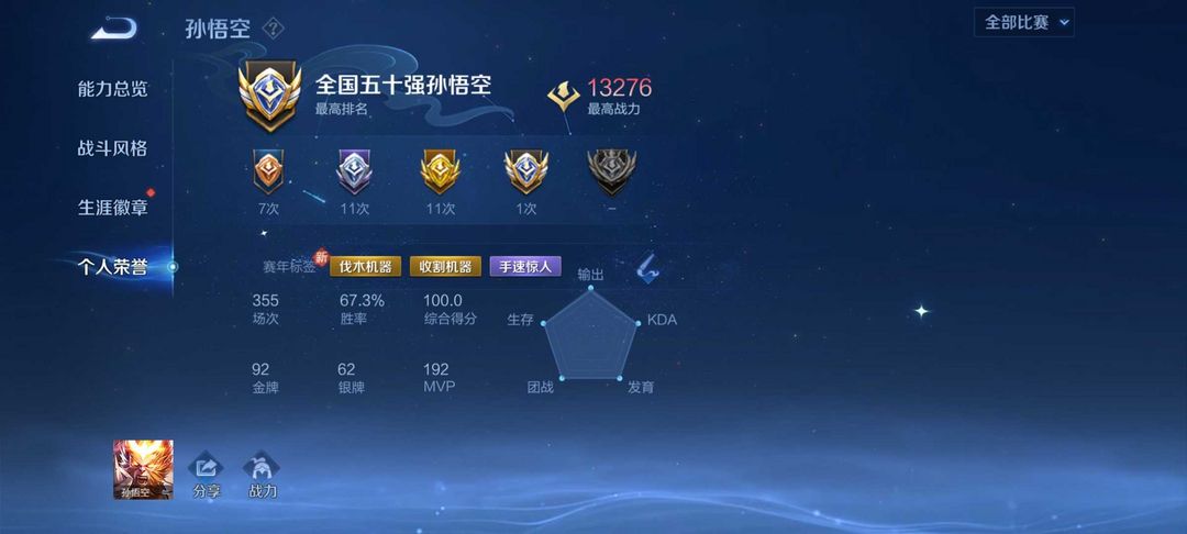 历史国服50强1w3战力猴子❤️高胜率百评❤️