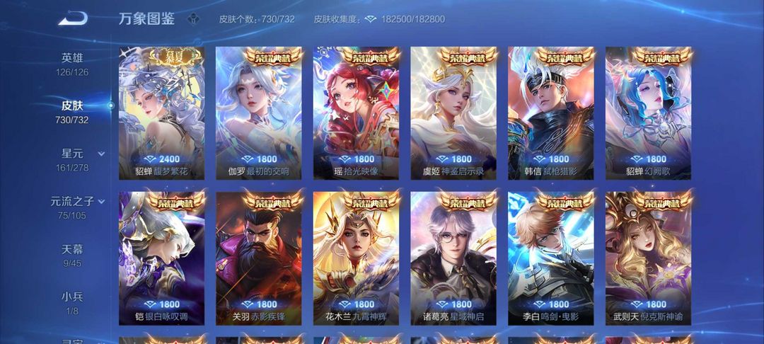 733满皮 干将公孙离狐妖小红娘✨诡秘之主系列全皮✨满典藏♥满无双满珍品♥馥梦繁花♥50段打野