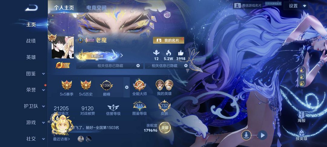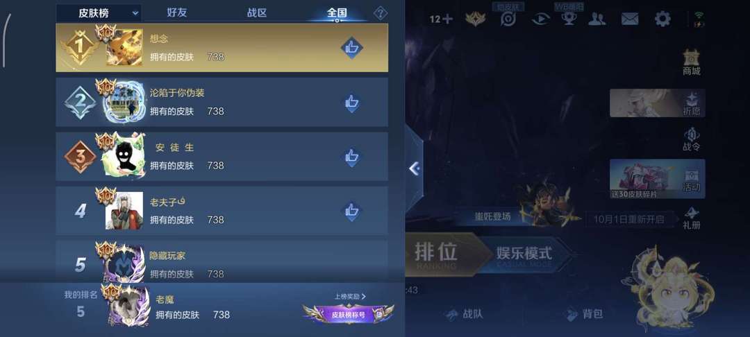 满皮738❤️有戳戳❤️全国皮肤榜第5❤️满按键❤️满天幕⭐️可改头像⭐️开挂必追责❤️412区
