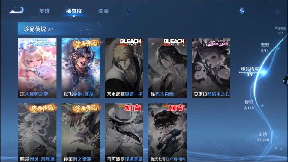 装备描述:贵族等级: V6 英雄数: 124 皮肤数: 134 珍品传说: 兔狲·蓬尾,大耳狗之梦 传说皮: 无双飞将 限定皮: 至尊宝,高山流水,圣诞老人,猪悟能,匿光追影者,五谷丰年,鸣野蒿