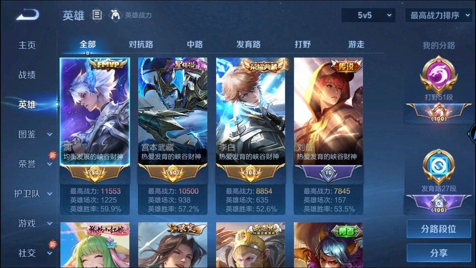 包天便宜✨不禁言打野51段 金标澜 金标宫本武藏 金标李白 1典藏1无双2珍品24传说