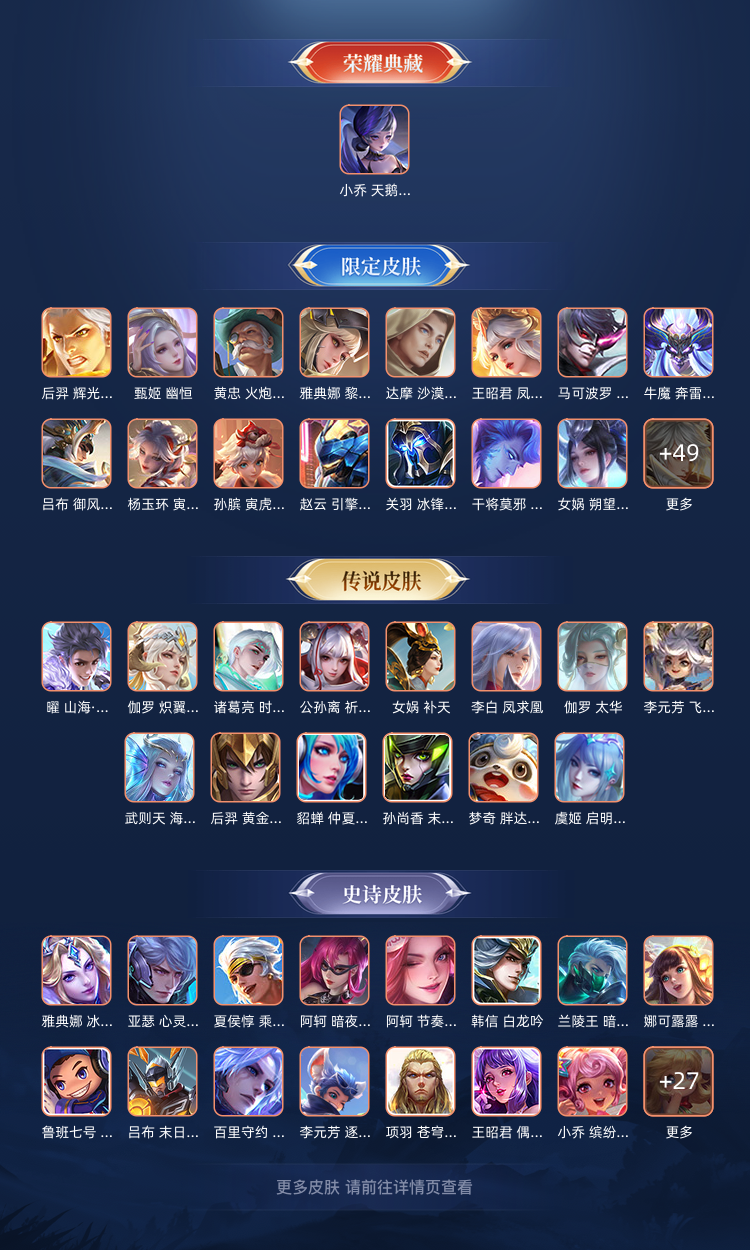 小兵皮肤❤龙限全❤天鹅之梦花合斗❤真我赫兹碎月剑心❤时之魔女青丘九尾❤神器明辉仪九山相柳水兵月霜月呤