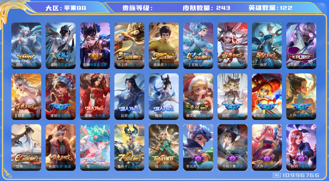 游戏区服:王者荣耀-QQ苹果-QQ账号