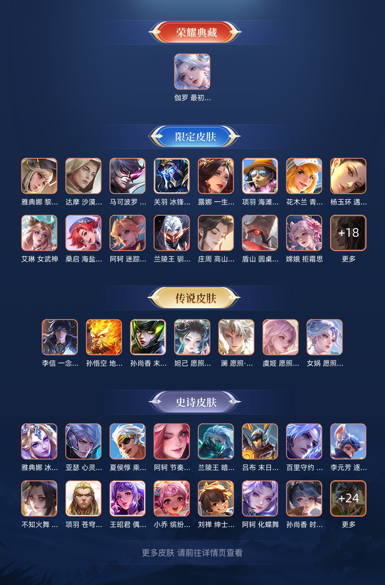 限制: 租号3次及以上 |装备描述:>>>>>>毁号,涉及毁坏虚拟财产罪及计算机安全罪,请文明游戏素质游戏,让我们共建美好租号平台>>>>>> 本游戏账号: V8用户,基础段位:永恒钻石V,英雄多,皮肤多。典藏皮肤11个,感受典藏皮肤带来的优质体验快感,FMVP皮肤9个,尽情享受FMVP皮肤带来的主角光环, 私人所属英雄皮肤有:诸葛亮 星域神启||铠 银白咏叹调||孙尚香 杀手不太冷||鲁班七号 星空梦想||李白 鸣剑·曳影||武则天 倪克斯神谕||关羽 赤影疾锋||貂蝉 幻阙歌||花木兰 九霄神辉||孙悟空 全息碎影||小乔 天鹅之梦,等等 注意事项: A.游戏过程中请不要恶意挂机或者不文明发言;B.恶意挂机、顶号等行为将被拉黑无法再次下单;C.进入游戏后中途请勿退出登陆,否则无法再次上号;D.部分账号由于异地登录可能会出现密码错误提示,通常再尝试5-6次后可上号。 |||||||||>喜欢本账号请点 ☆收藏☆ 方便下次租用,谢谢光临惠顾|||||||||