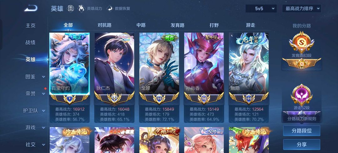 在榜省发育路⭐大国标狄仁杰小国守约香香戈雅敖丙⭐凯.神罪⭐294级图鉴满细节⭐19星传说