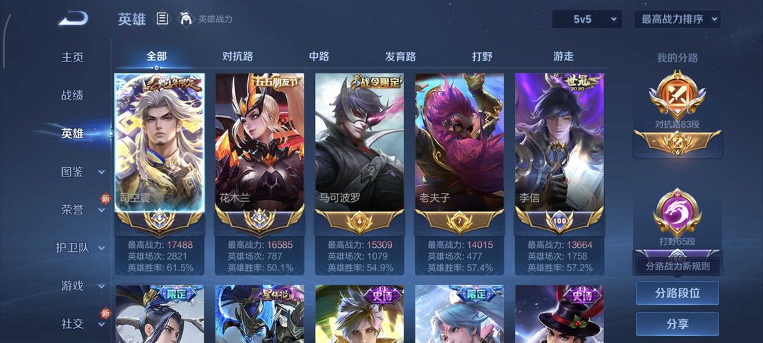 正式服83段对抗⭐大国服1.66w花木兰⭐大国服1.75w司空震⭐国服李信⭐无敌带妹号