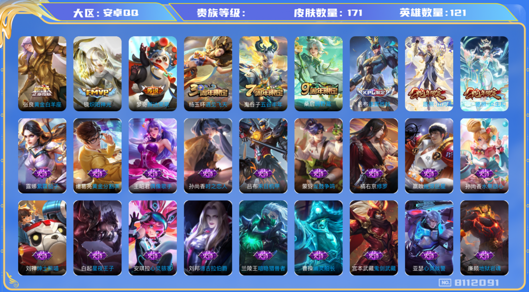 游戏区服:王者荣耀-QQ安卓-QQ账号