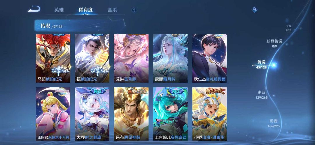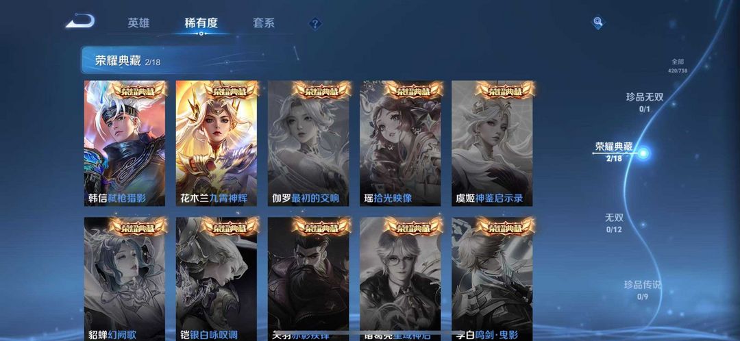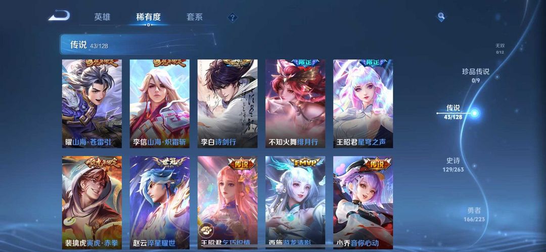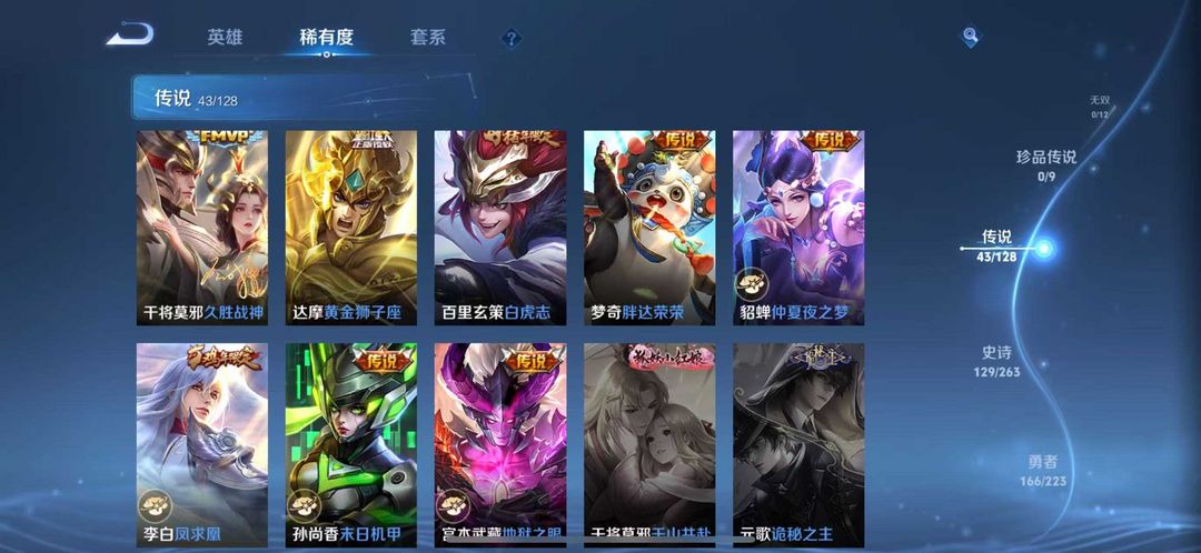 v10❤️荣耀典藏2❤️ 传说皮肤43❤️史诗皮肤128 420皮肤