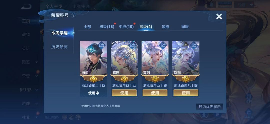 4省标海诺貂蝉女娲嫦娥在榜⭐巅峰中路闪电框⭐可排位/禁巅峰