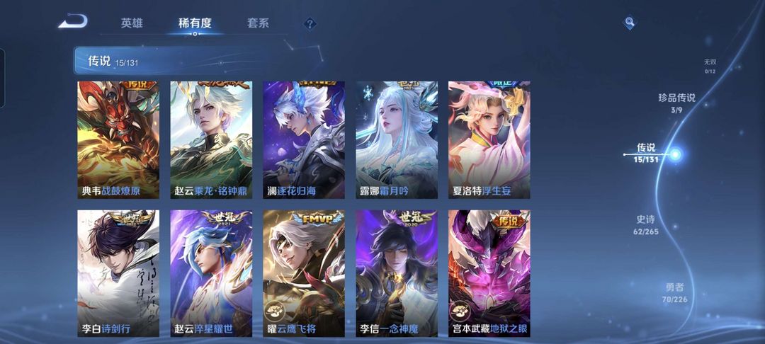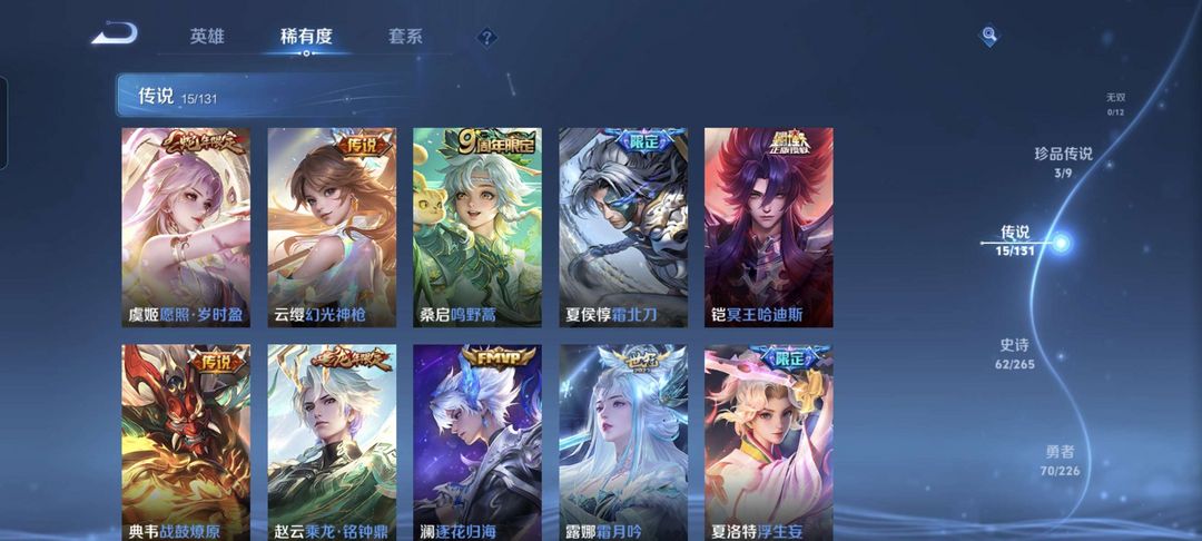 全英雄韩信典藏15传说170皮✨弑枪猎影星耀✨幻光神枪逐花归海✨冥王哈迪斯霜月吟浮生妄诗剑行一念成魔