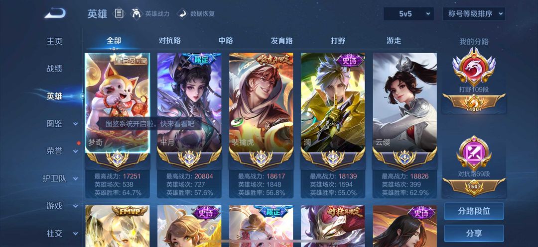极品109段打野♥️历史5国标6小国⭐2w战力芈月老虎澜梦奇云缨♥️可排撤单拉黑