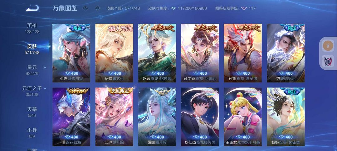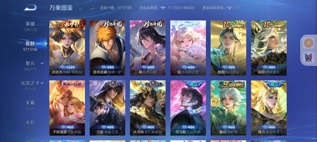 571皮肤全新皮❤️貂蝉慕夏❤️8无双❤️凯神罪天机白泽❤️诡秘之主❤️85传说皮❤️精品号