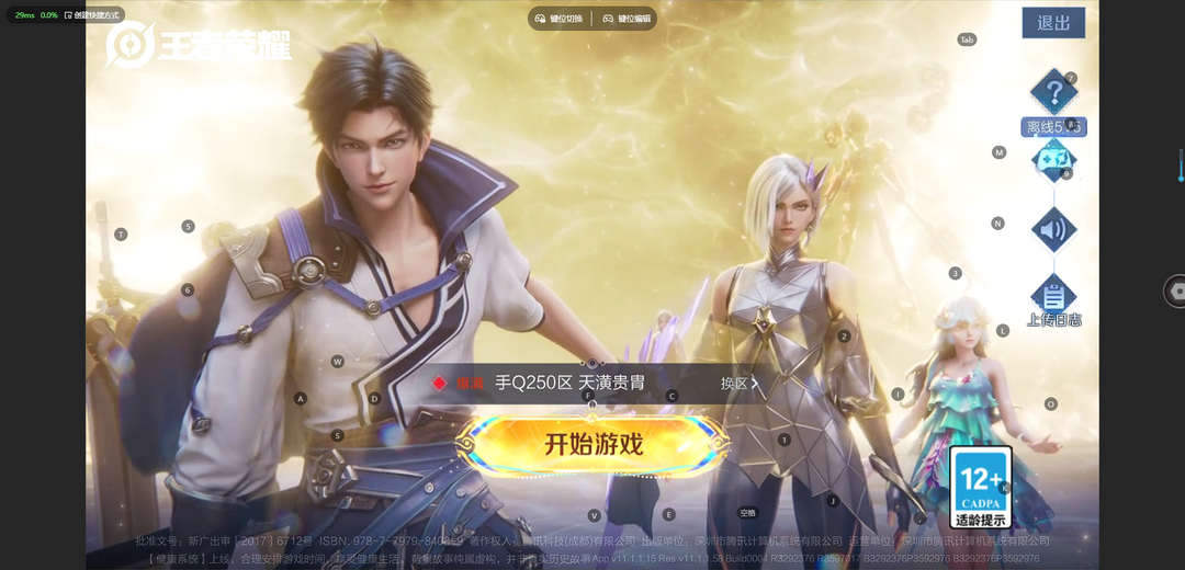 游戏区服:王者荣耀-QQ安卓-QQ账号
