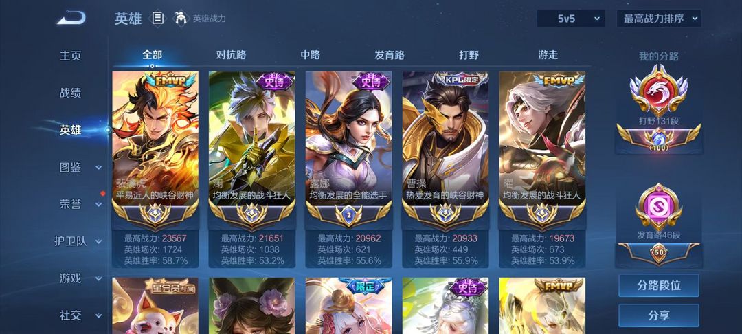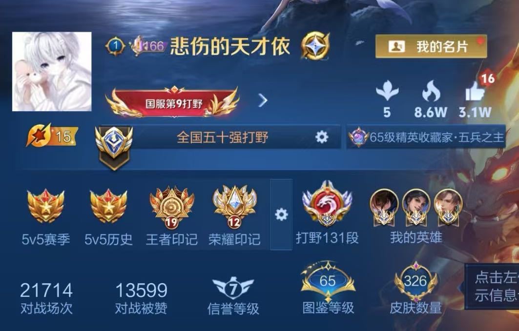 (高危只能娱乐)1月正式服在榜131段五十强打野⭐2.3w裴擒虎十国服⭐超多省级限定皮肤⭐