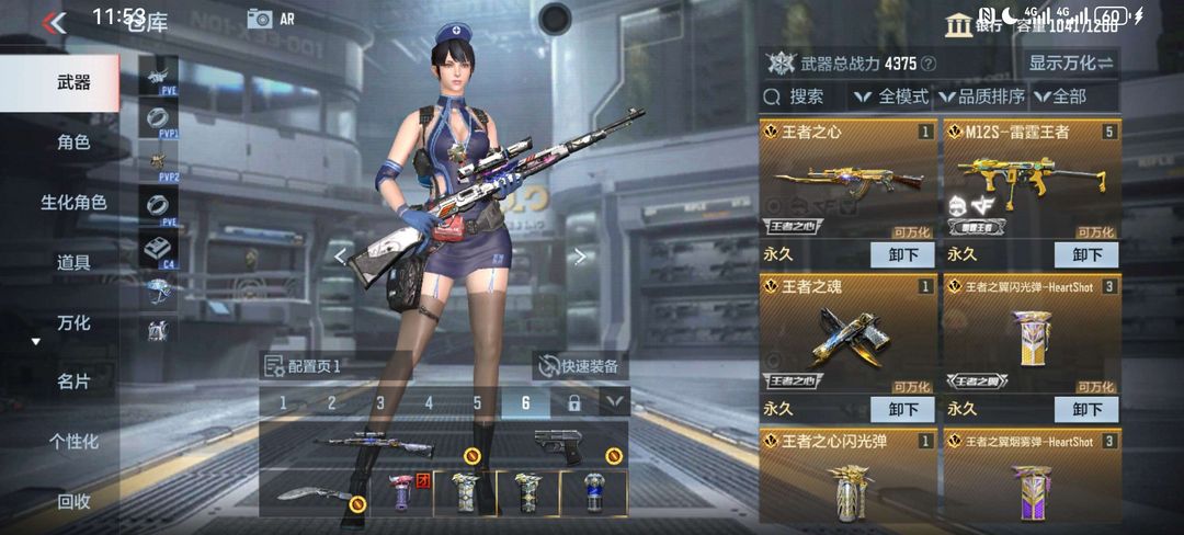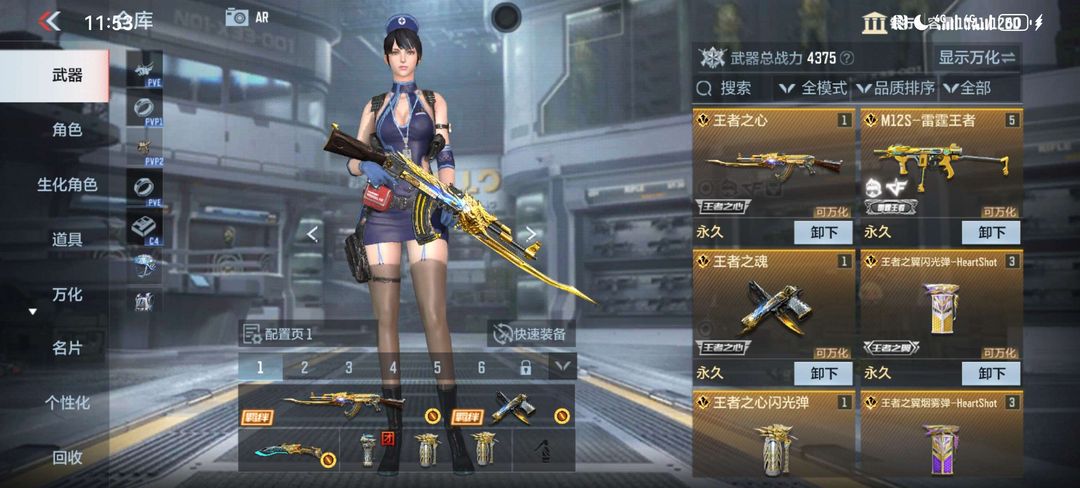 装备描述:毁灭套装,王者之心,雷霆王者,98k星神等