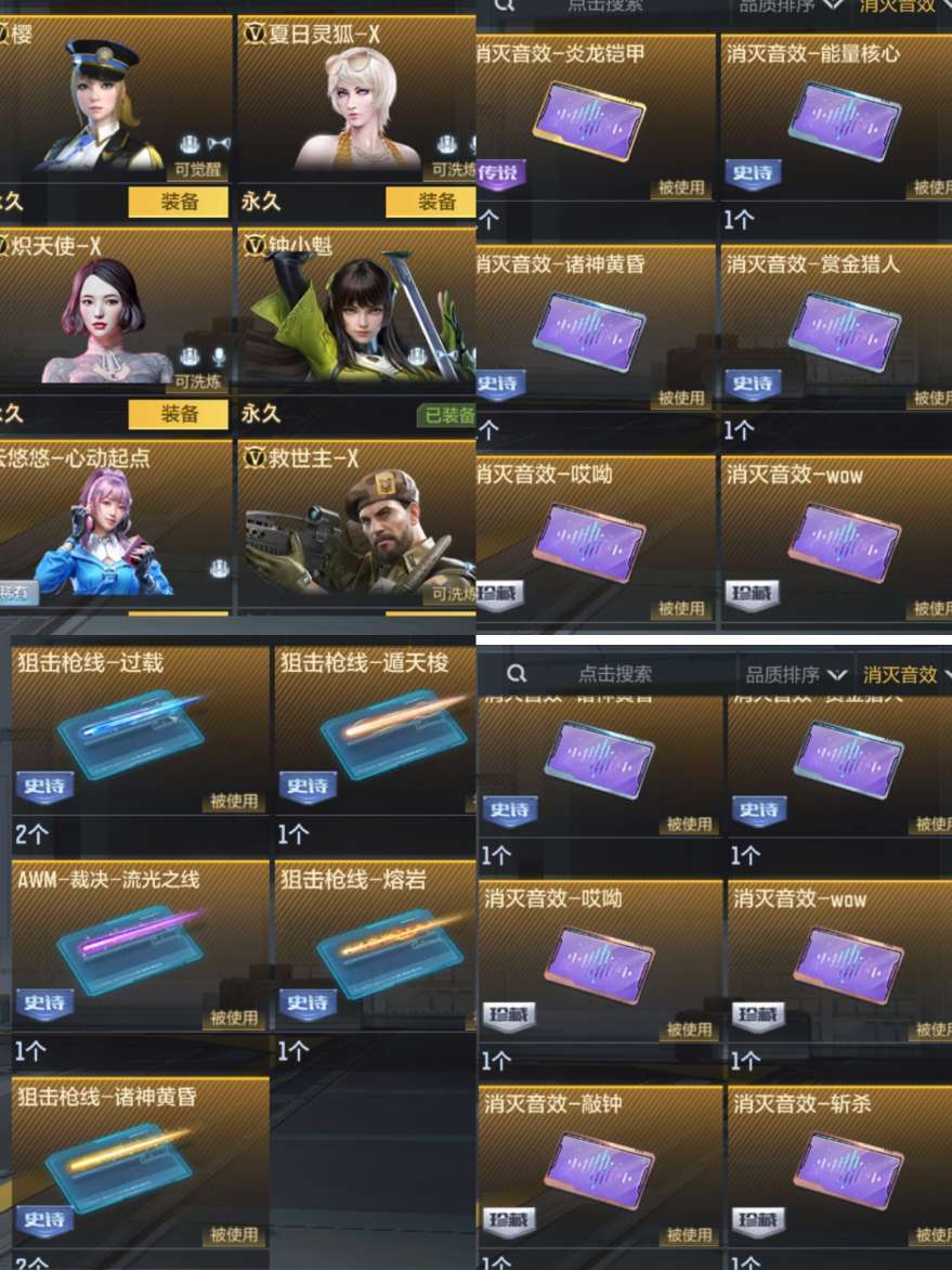 装备描述:【租客必看】已备案,开挂封号一律报警并法院起诉,绝对绝对追究到底。网络不是法外之地,做一件事的时候要考虑后果是否能承担的,请勿抱有侥幸心理,刑事部门找上门罚钱坐牢留下案底亲人两行泪!《刑法》故意毁坏财产物罪故意毁坏公私财物(虚拟财产也算财产本号价值超过3000,数额较大或有其他严重情节,处罚三年以下有期徒刑,拘留或着罚金。 ❗禁止用钥匙和赏金币,不然投诉(都能看到流水记录,别以为用了我不知道)❗ 传奇3600 ⭐七王心雷⭐ ⭐怒/心/魄至尊⭐王城/势套⭐兔兔战士/仲达/孟获/仲康套⭐ ⭐步枪⭐王星,王势(熔岩),王城(拉丝/音),王蔷(冰皮),王技(冰皮/音),王魄(拉丝/音),王影(炫金/音),王心(音),王兽,王启,王誉,王尊,常胜(单骑),兔兔战士(丛林/音效),ak竞界荣光,m4游骑兵,仁德,仲达(过载/音效),盖,文远, ⭐狙击枪⭐王怒,awm游骑兵,秒才,幻神 ⭐副武器⭐王魂(拉丝),王电(紫电),雷霆COP ⭐近战⭐王锋(拉丝),王刺(熔岩) ⭐冲锋枪⭐王蝶,仲康,天公,3王烈4寒烈 ⭐霰弹枪⭐孟获,王霆 ⭐人物⭐钟小葵,夏日灵狐(觉醒),冰霜消灭,8个消灭音效,5个枪线