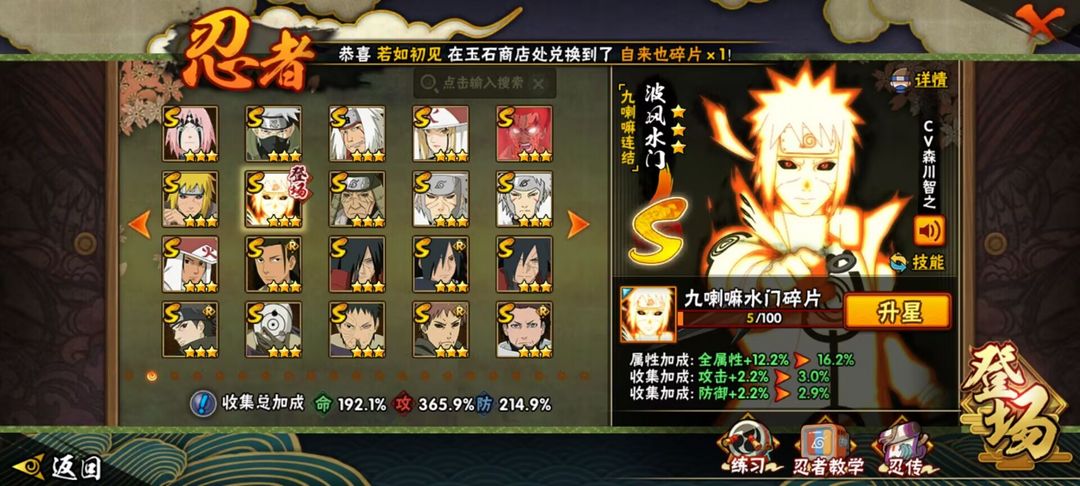 新S九尾连结水门⭐传说自来也⭐须佐止水⭐ 3900万战力⭐399全忍者⭐全通灵