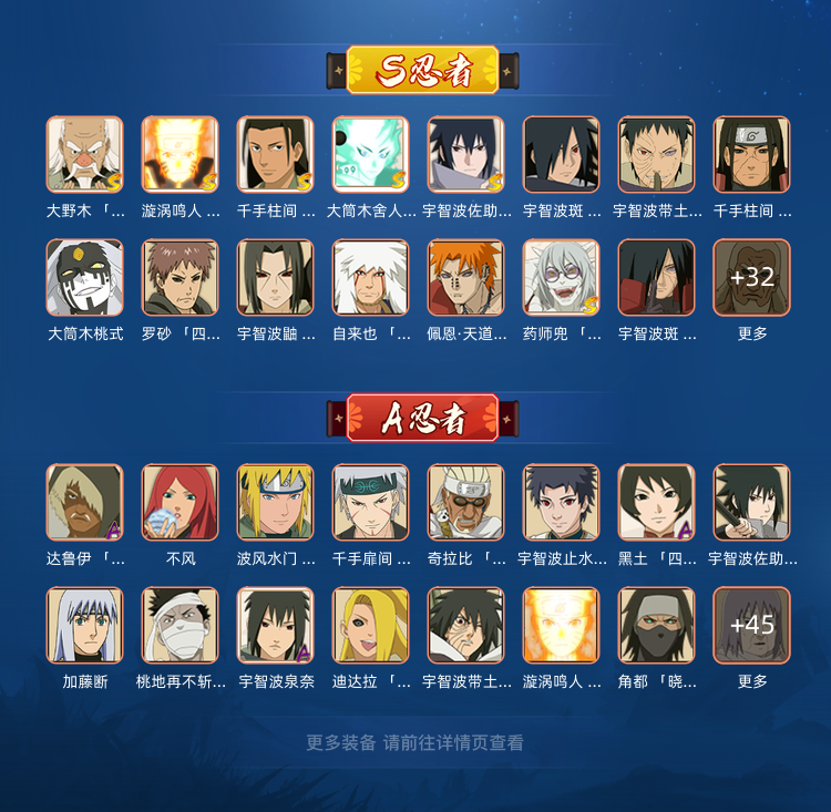 秽土解斑已秒☀永恒万花筒佐助☀37S60A满配☀新传说三忍自来也☀暴怒带土☀侠影纲手☀须佐止水,全满