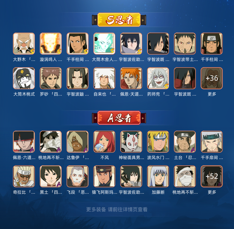 限制: 撤单率<30%才可租用此帐号装备描述:全s 永恒佐助 创立柱间 红面具 九喇嘛 大筒木金式 三代风影 忍战大野木 44A面麻 青年水门 扉武 须佐佐助 青年雷 30通灵 十级霸体 V15 战力战区前十