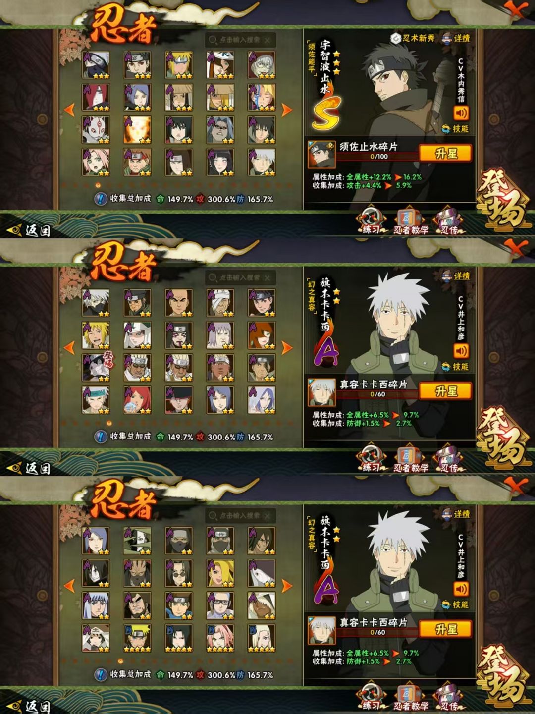 装备描述:✨租号前必看 您要知道的上号小知识: ✨如登录不上 需要手动点一下与微xin好友玩 即可平台原因,如果登录上是自己的号,你要在右上角 点返回,到选wx区/Q区的界面。再回到平台来启动游戏,自动跳转到登录界面后,点一下 与wx好友玩 即可,百试百灵! ✨如遇顶号 可能是 上一单卡登录 重新登录 就好 ✨如上号弹ren脸藏别 请关闭游戏 重新启动登录 30S忍 ✨秽土水门✨白面具✨三代猿飞日斩✨秽土鼬✨秽土斑✨自来也✨大蛇丸✨秽土长门✨仙人自来也仙自✨仙人兜✨四代雷影艾✨无✨二代千手扉间✨三代雷影艾✨秽土半藏✨天道佩恩✨百豪纲手✨千手柱间初代✨佩恩超天道超✨面具男✨水门✨金角银角✨须佐鼬✨纲手✨秽土二代✨鬼灯幻月✨斑✨豪杰自来也✨秽土三代✨大野木
