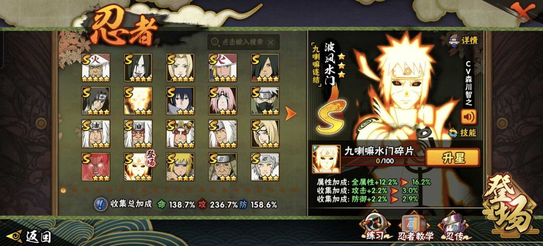 九喇嘛水门,传说自来也,绯蝎,须佐卡卡西,忍战艾,漂泊小南/红夜面具男/青年长门/漂泊佩恩,全忍者