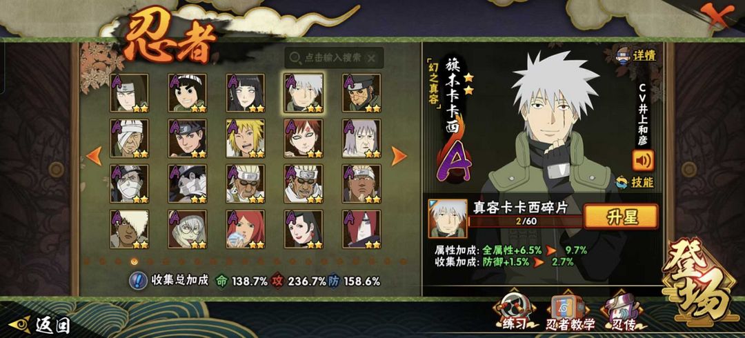 限制: 撤单率<80%才可租用此帐号装备描述:1640战力,死门凯,忍界带土,大野木,新春水门,新春鼬,白面具,秽土扉间,秽土水门,新春鼬神,仙人自来,超秀新春水门