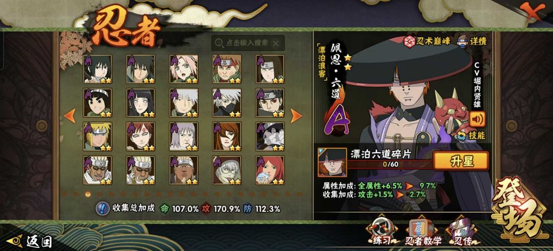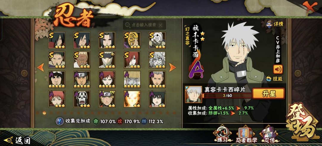 限制: 撤单率<80%才可租用此帐号装备描述:死门凯,秽土柱间,秽土鼬,舞杰自来也,仙兜,须佐,