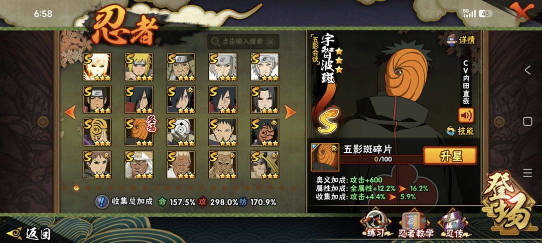 限制: 租号1次及以上 |装备描述:极品48S✨宇智波斑五影会谈✨暴走带土✨阿斯玛七夕限定✨漂泊佩恩✨漂泊二代✨神秘面具男忍者之路✨新春止水