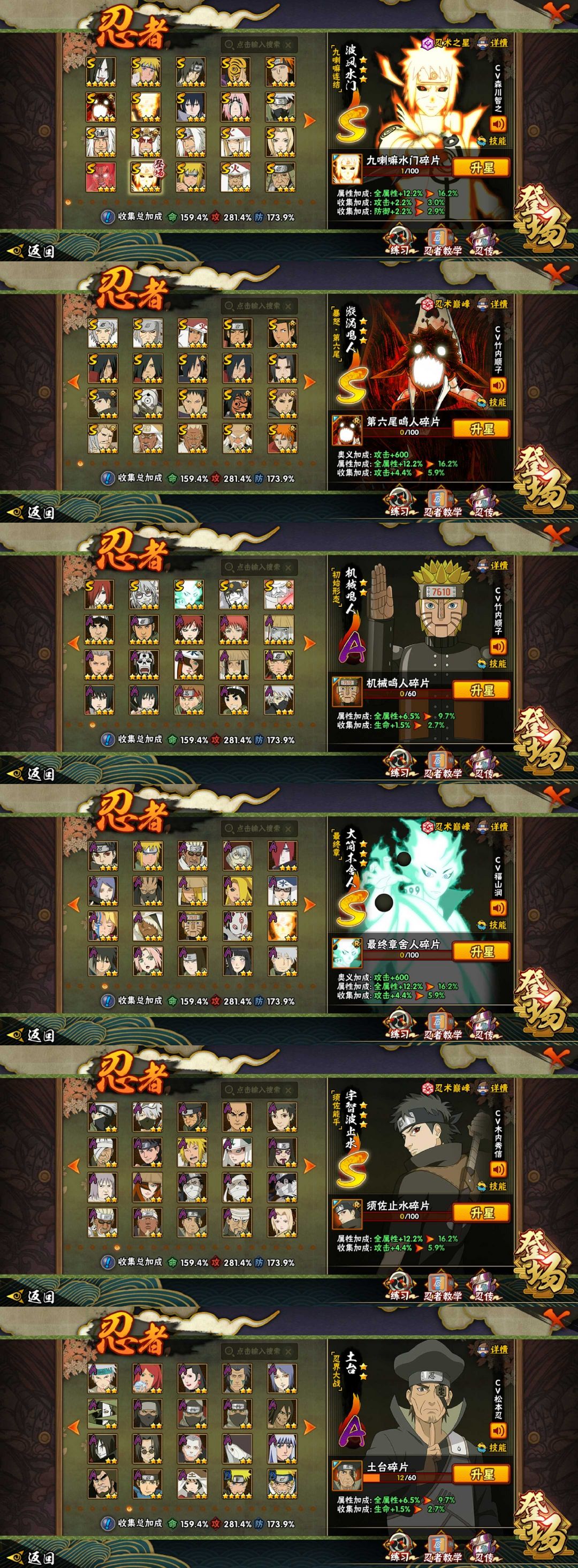 九喇嘛水门☀机械鸣人☀53S☀80A☀370忍☀全高招☀六尾鸣人☀舍人桃式☀须佐止水☀面麻☀侠隐纲手
