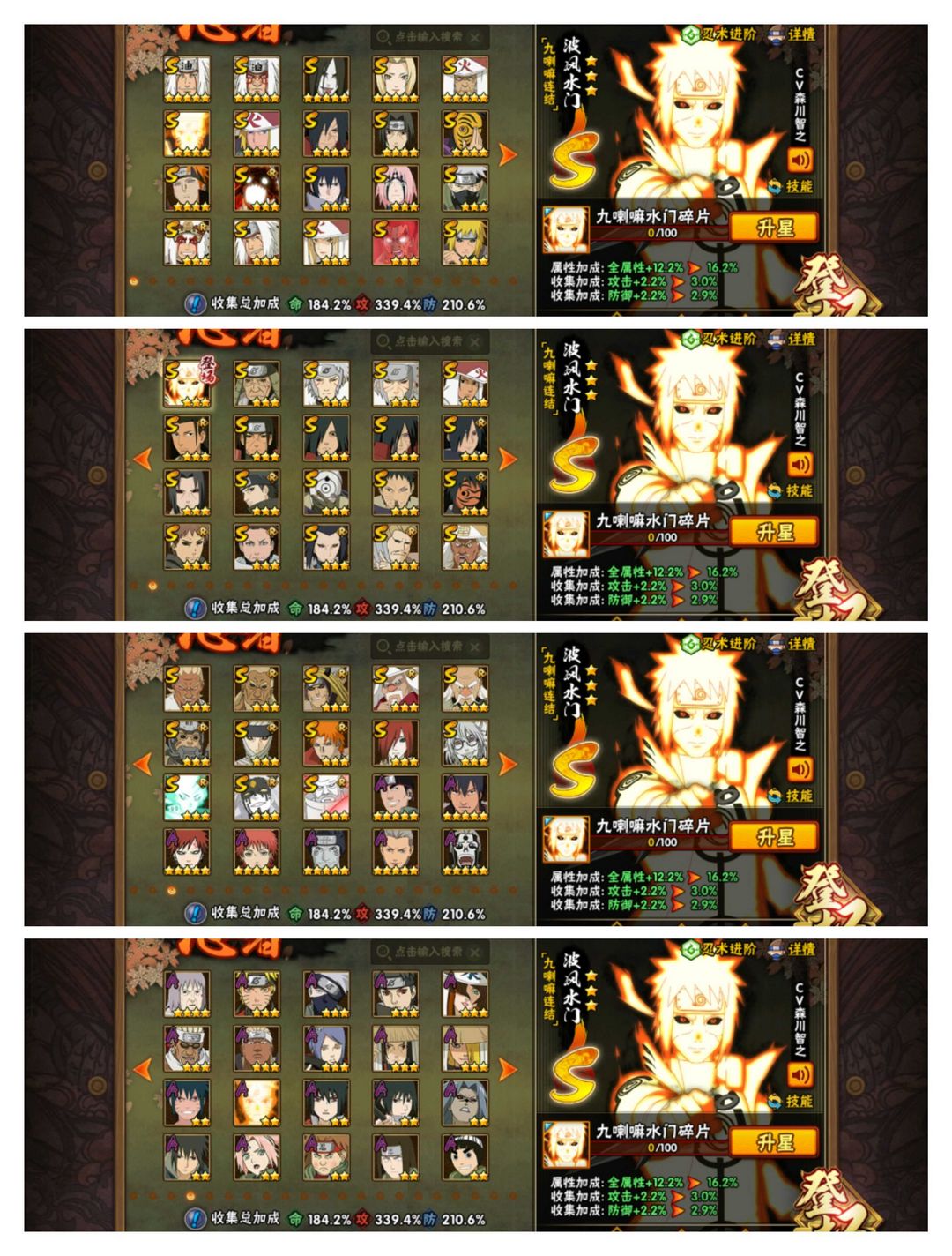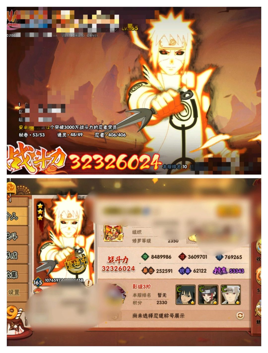 407全忍者☀九喇嘛水门☀3250万71级魅力☀53S101A☀黑土全套+香磷☀六尾鸣人☀全通灵
