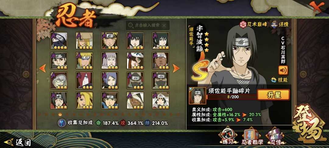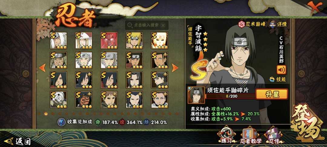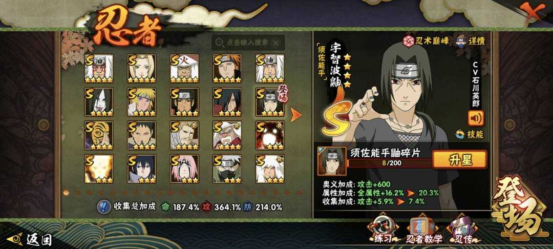 九喇嘛水门已秒✨六尾鸣人✨夏日黑土全53s✨漂泊带土✨黑绝✨顶配406全忍者✨3400w至高战力可带