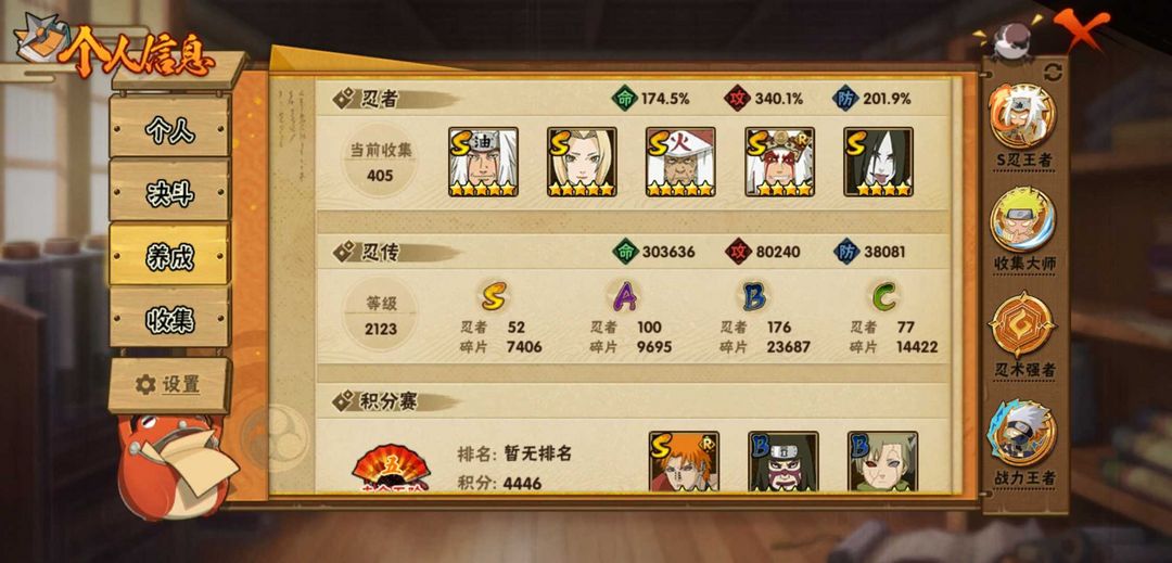 九喇嘛水门✨52S✨405全忍者✨夏日黑土✨秽土再不斩✨暴怒六尾鸣人✨绝版妙木山场景✨2500万战力