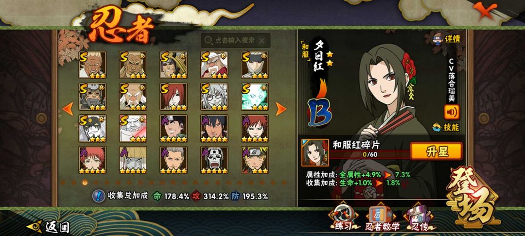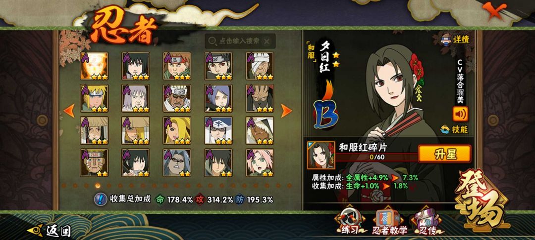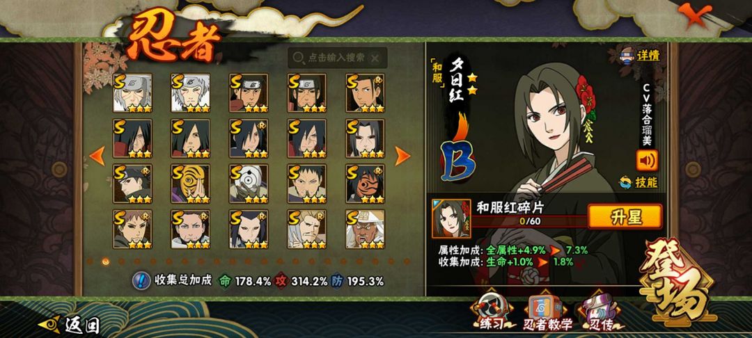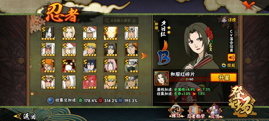 358个忍者,3004W战力,S忍52个,A忍67个,通灵兽28个