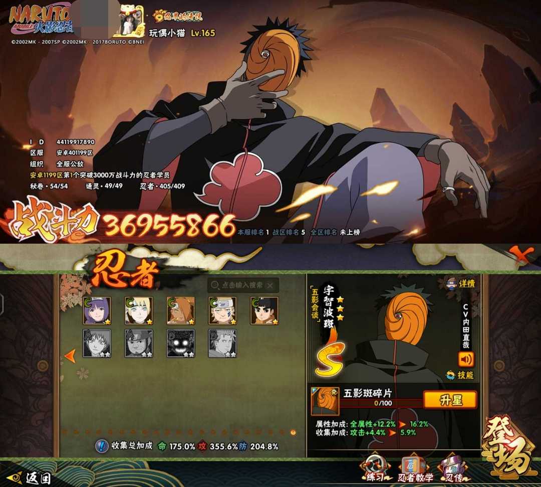 五影会谈斑已秒♈405忍全忍者♈3700w至高战力♈全直购♈全通灵♈全奥义♈全时装♈五影会谈斑