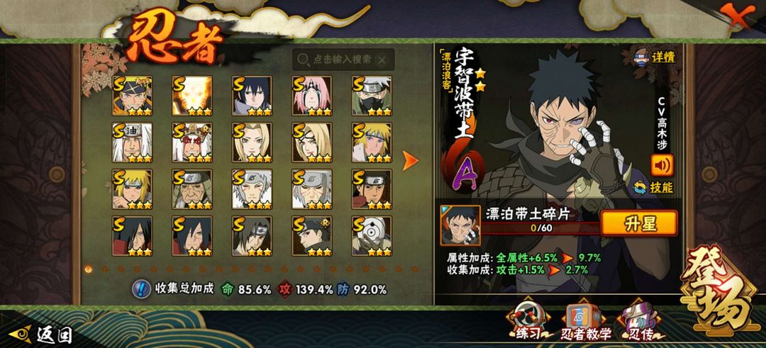 装备描述:⭐️忍战艾⭐️桃矢⭐️须佐止水⭐️紫狗⭐️秽土斑⭐️百豪纲手⭐️活二⭐️柱间⭐️白面具⭐️史樱⭐️死三⭐️死二⭐️龙兜⭐️死迪⭐️普通人⭐️长门⭐️金鸣⭐️忍战我爱罗