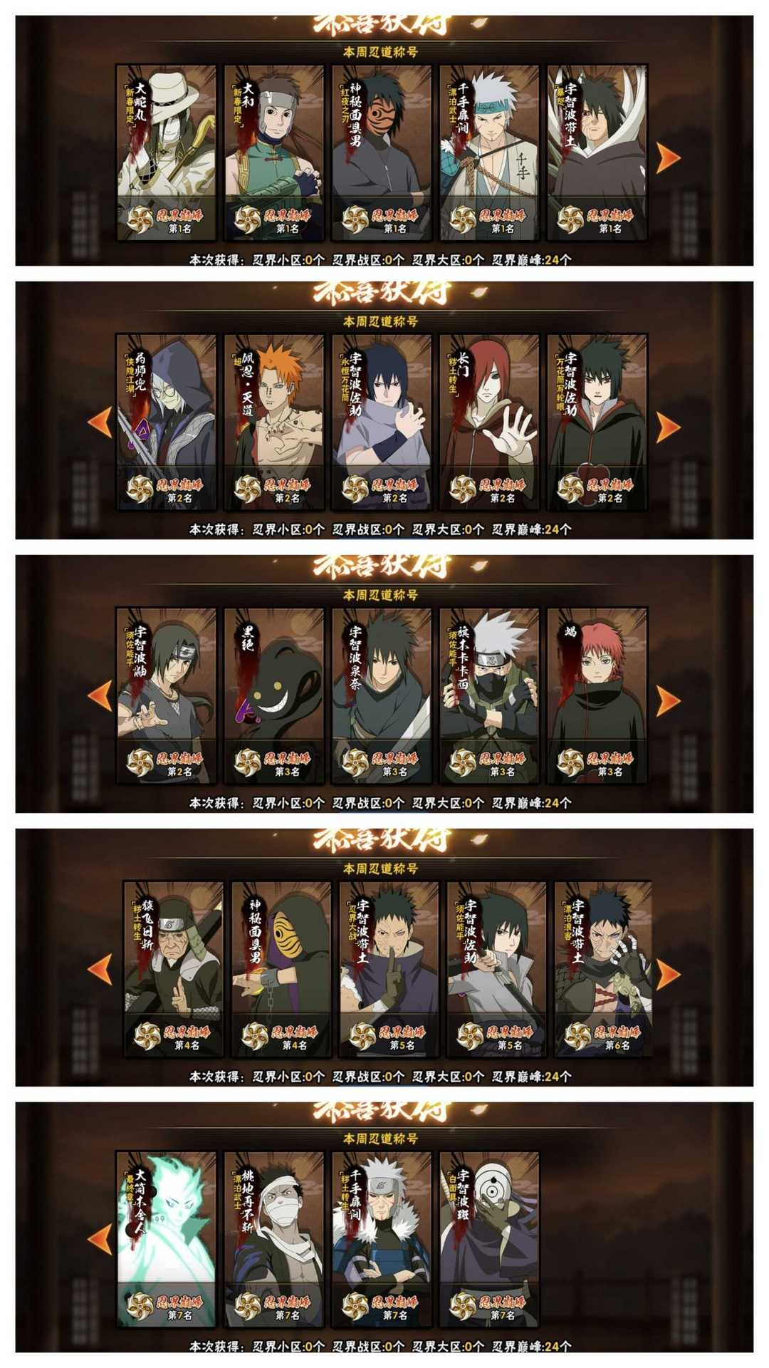 十月24国服➣国一红面具暴怒带土漂泊扉间新春蛇大和➣国二侠隐兜天道超百战鼬紫狗鹰佐长门黑绝漂泊带土