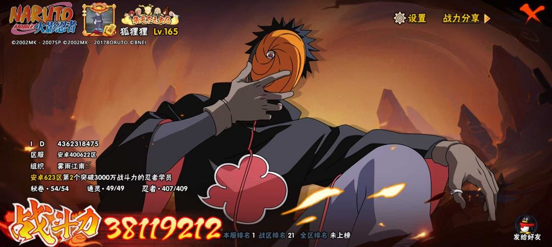 五影会谈斑➣机械鸣人➣4000万战力➣410全忍者全通灵➣满时装满奥义➣黑绝➣漂泊带土➣九喇嘛水门