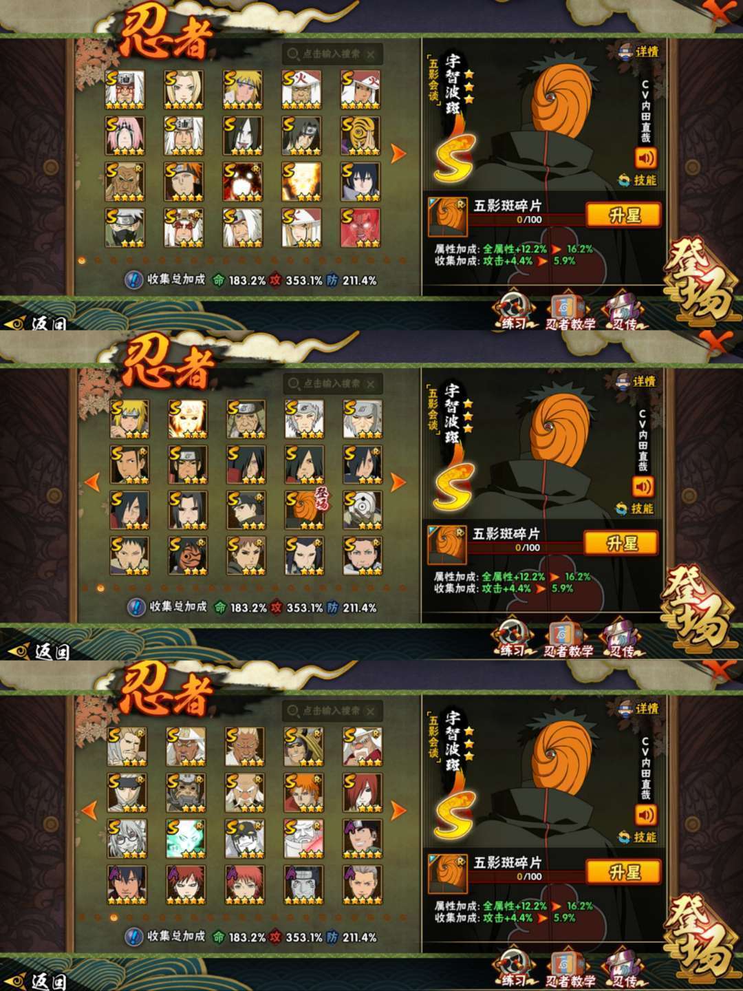 五影会谈斑已秒⭕机械鸣人⭕3400万54S全忍者全通灵⭕黑绝⭕漂泊带土⭕多奥义时装高氪满配3000w