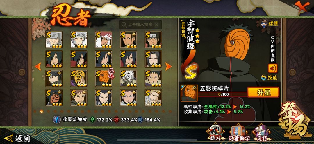 2500战力,400忍者❤️48s76a❤️五影斑侠隐佐助九尾水门夏日黑土,六尾鸣人, 高招全忍者