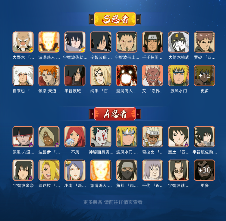 装备描述:1800w战力32S+44A忍者✨天道超桃式金式永恒万花筒佐助漂泊带土✨黑绝